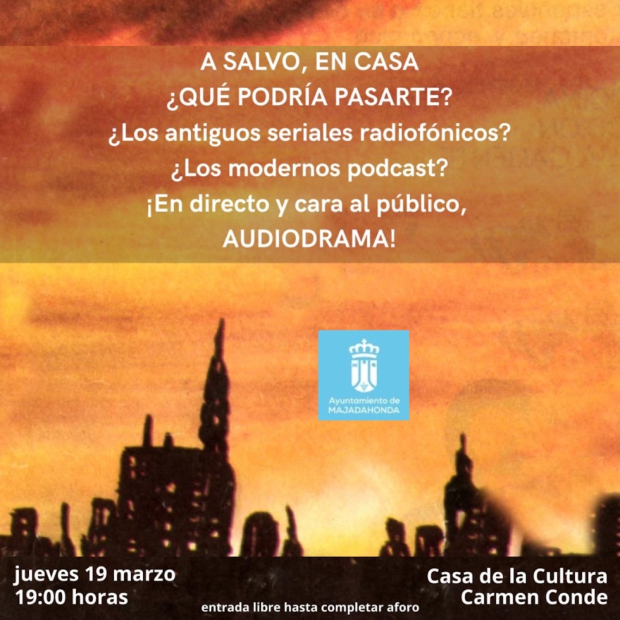 A salvo, en casa Audiodrama Colectivo en Majadahonda. A SALVO, EN CASA. Jueves 19 de marzo, a las 19:00 horas. Casa de la Cultura Teatro Carmen Conde. + Añadir Google Calendar + exportación iCal / Outlook Fecha 19 Mar 2026 Hora 19:00 Localización Casa de la Cultura Carmen Conde Majadahonda, Madrid Organizador Audiodrama Colectivo Compartir este evento